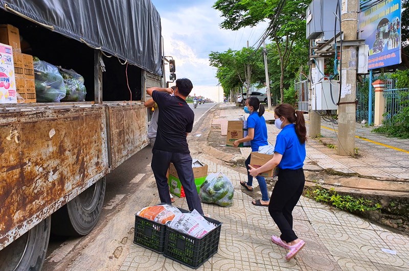 Để việc trao tặng rau quả an toàn, hiệu quả, thực hiện nghiêm quy trình phòng chống dịch của Bộ Y tế, sau khi “Chuyến xe nghĩa tình” chở rau quả từ Bình Phước về đến khu vực Kho A - Bãi Sậy (Quận 6, TP Hồ Chí Minh), Thành Đoàn TP Hồ Chí Minh đã bố trí tình nguyện viên chờ sẵn tại đây để tiếp nhận rau quả và sớm phân phối về các bếp ăn tại những khu cách ly - phong tỏa, hỗ trợ tuyến đầu đang “gồng mình” chống dịch và người dân gặp khó khăn ở vùng dịch.