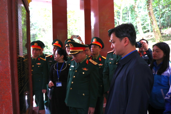 Chiều cùng ngày, Trung ương Đoàn cùng Tỉnh đoàn Cao Bằng dâng hương Chủ tịch Hồ Chí Minh tại Khu di tích Quốc gia đặc biệt, địa điểm chiến thắng biên giới 1950 ở xã Đức Long, huyện Thạch An.