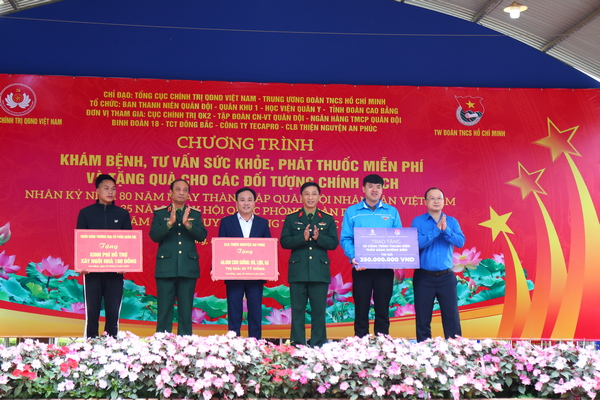 Trong khuôn khổ chương trình, đoàn công tác tổ chức khám bệnh, cấp phát thuốc miễn phí cho hơn 500 bà con nhân dân là các hộ nghèo, gia đình chính sách trên địa bàn huyện Nguyên Bình; thăm, tặng quà 2 gia đình chính sách: Ông Tô Đình Báu (thương binh 62%) và ông Tô Hữu Việt (thương binh 32%), ở xóm Tân Tiến, xã Minh Tâm, huyện Nguyên Bình.