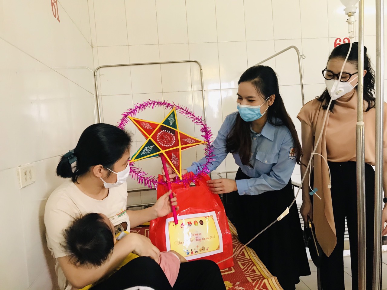 Tại Khoa Nhi bệnh viện tỉnh và Hội người Mù tỉnh, đồng chí Nguyễn Ny Hương - Phó Bí thư Tỉnh đoàn, Chủ tịch HĐĐ tỉnh và đoàn công tác đã trao tặng 40 suất quà cho các em thiếu nhi đang điều trị tại bệnh viện, các em là con em lực lượng y bác sỹ đang tham gia chống dịch, trẻ em khuyết tật, khuyến thị.