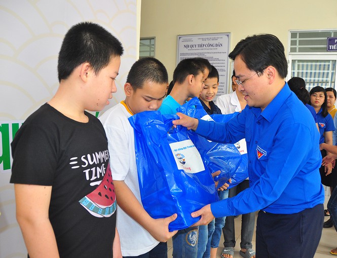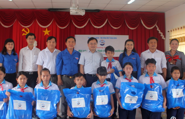 Bí thư thường trực Trung ương Đoàn Nguyễn Anh Tuấn tặng quà cho thiếu nhi
