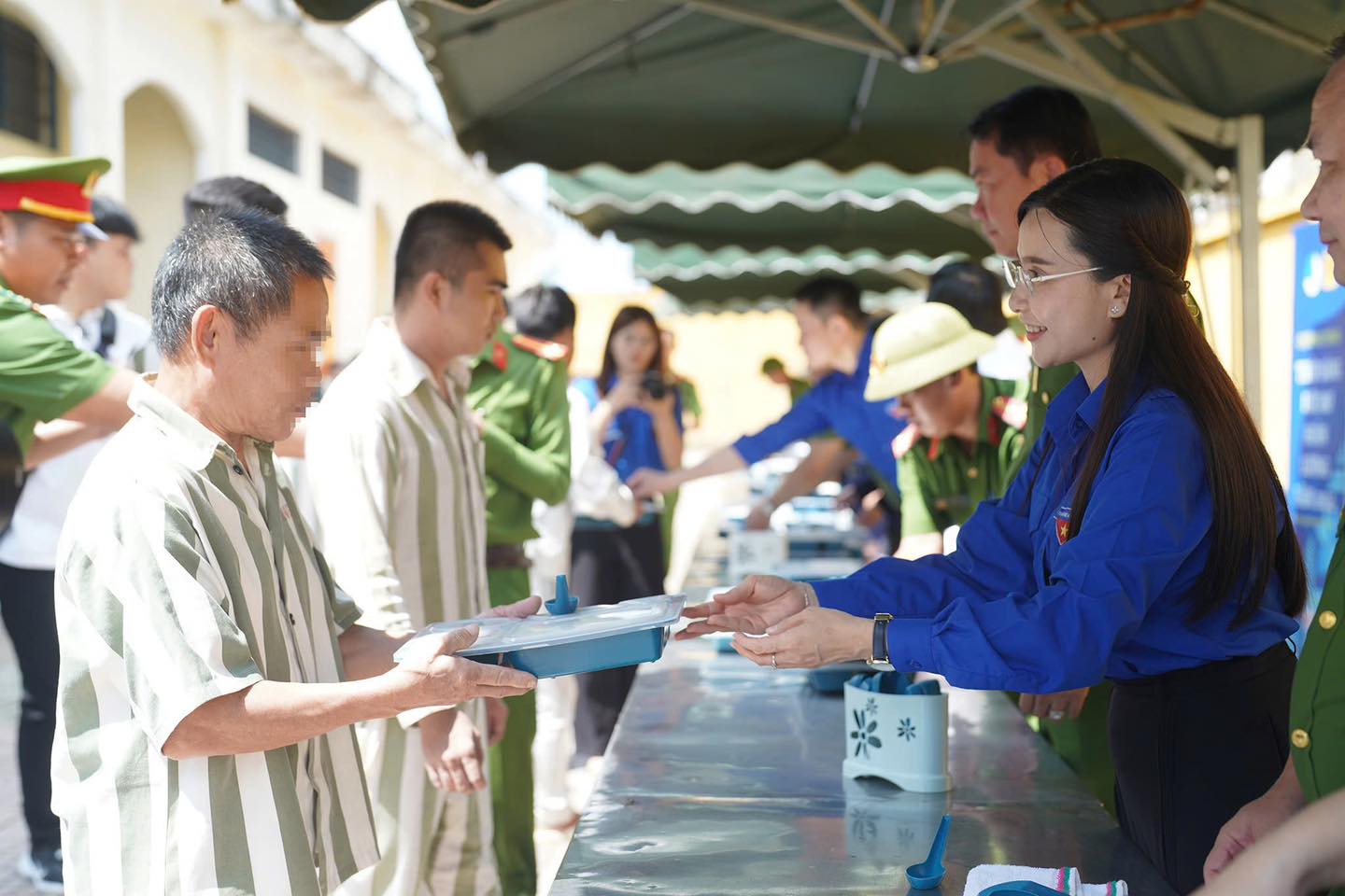 Đồng chí Nguyễn Phạm Duy Trang, Bí thư Trung ương Đoàn, Chủ tịch Hội đồng Đội Trung ương trao tặng những phần cơm nhân ái tới các phạm nhân tại trại giam Long Hoà