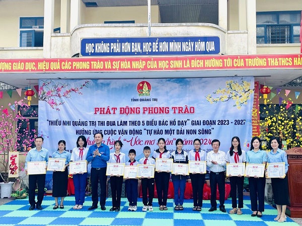 ĐTN: Ngày 19/01, Hội đồng Đội tỉnh tổ chức Phát động phong trào “Thiếu nhi Quảng Trị thi đua làm theo 5 điều Bác Hồ dạy” giai đoạn 2023 - 2027; hưởng ứng Cuộc vận động “Tự hào một dải non sông” và Chương trình “Ước mơ xuân” năm 2024 tại xã Hải Lệ, thị xã Quảng Trị.