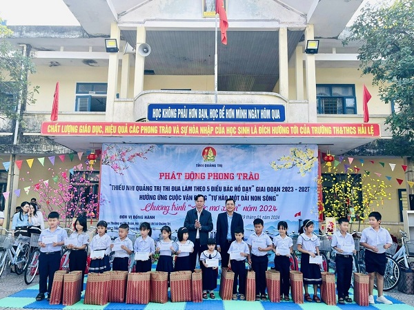 Trong khuôn khổ chương trình “Ước mơ Xuân” năm 2024, Hội đồng Đội tỉnh đã trao tặng 14 chiếc xe đạp, 10 “Góc học tập cho em”, 44 suất quà cho các em học sinh có hoàn cảnh đặc biệt khó khăn. Bên cạnh đó, các em học sinh đã tham gia Hội thi “Gói bánh chưng xanh - Vui ước mơ Xuân” với nhiều trải nghiệm bổ ích, lí thú và đồng diễn flashmob tại sân trường.
