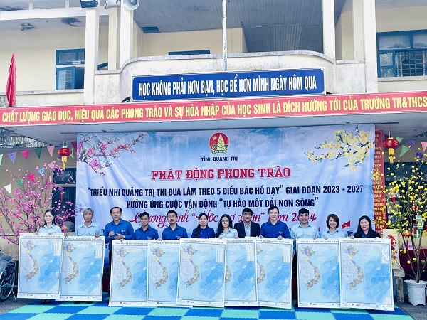 Cũng trong chương trình, để hưởng ứng Cuộc vận động “Tự hào một dải non sông” với thông điệp “Mỗi tấm bản đồ, một trái tim Việt Nam”, Ban Tổ chức trao tặng 198 bản đồ cho 198 Liên đội trong toàn tỉnh và 22 bản đồ cho Liên đội Trường TH&THCS Hải Lệ.