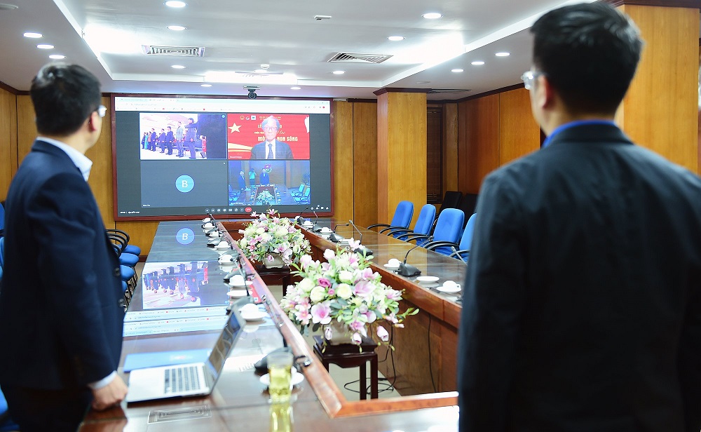 Lễ chào cờ tại 02 điểm cầu Việt Nam và Nhật Bản