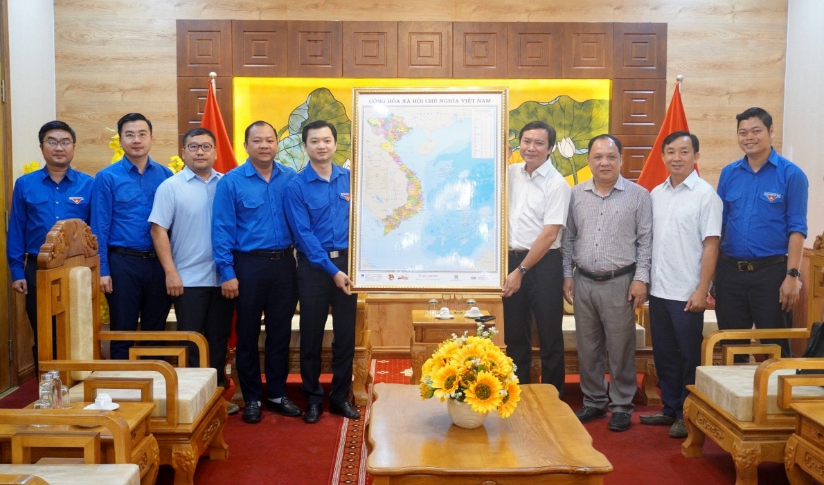 Đoàn công tác trao tặng Bản đồ Việt Nam cho lãnh đạo TP Hồng Ngự