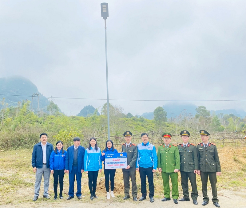 Đoàn thanh niên Công an tỉnh Bắc Giang – Công ty TNHH Đầu tư Xây dựng hạ tầng giao thông Phương Bắc trao tặng công trình thanh niên “Thắp sáng đường quê” trị giá 20 triệu đồng cho bà con nhân dân xóm Bằng Ca, Bang Dưới, xã Lý Quốc.