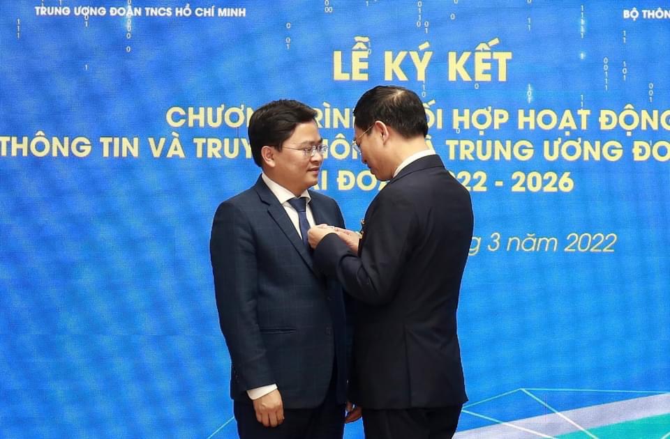 Theo đó, thay mặt Ban Chấp hành Trung ương Đoàn, đồng chí Nguyễn Anh Tuấn - Ủy viên BCH Trung ương Đảng, Bí thư thứ nhất BCH Trung ương Đoàn đã trao tặng Kỷ niệm chương "Vì thế hệ trẻ" - phần thưởng cao quý nhất của Đoàn TNCS Hồ Chí Minh cho 03 cá nhân thuộc Bộ Thông tin và truyền thông vì đã có thành tích xuất sắc trong công tác giáo dục thế hệ trẻ, gồm:
