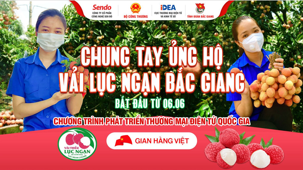 Tháng 5/2021, trước tình hình diễn biến phức tạp của dịch bệnh COVID-19 tại Bắc Giang, Tỉnh đoàn Bắc Giang phối hợp với Cục Thương mại điện tử và Kinh tế số (Bộ Công thương) và Sàn thương mại điện tử Sendo đồng hành với nông dân Lục Ngạn tiêu thụ vải thiều trong Chương trình “Áo xanh - Vải đỏ - Tấm lòng vàng”. Chương trình triển khai đã phát huy tinh thần năng động, sáng tạo, nhiệt tình của thanh niên trong việc tham gia hỗ trợ các khâu thu hoạch, đóng gói, vận chuyển, hướng dẫn người dân ứng dụng công nghệ số để tiêu thụ nông sản; phương thức mua hàng thuận tiện, nhanh gọn, đáp ứng yêu cầu về phòng, chống dịch bệnh Covid-19. Kết quả, tổng lượng đặt hàng qua sàn thương mại điện tử Sendo đạt 150 tấn.