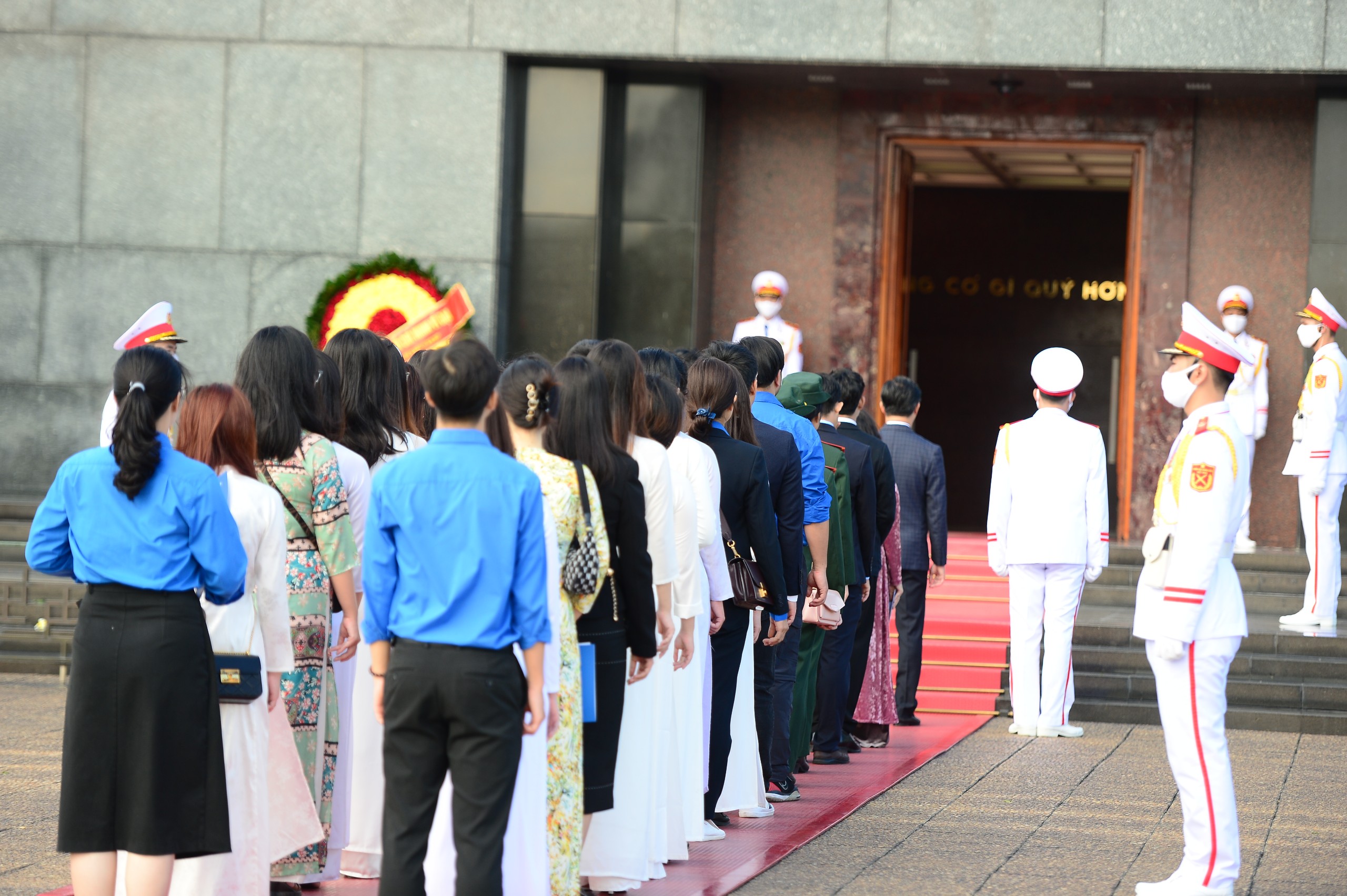 Dẫn đầu đoàn đại biểu viếng Lăng Bác là đồng chí Nguyễn Minh Triết, Bí thư Trung ương Đoàn, Chủ tịch T.Ư Hội Sinh viên Việt Nam