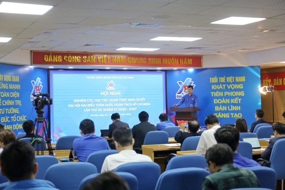 Trung ương Đoàn đã tổ chức Hội nghị trực tuyến học tập, quán triệt Nghị quyết Đại hội Đoàn toàn quốc lần thứ XII, kết nối tới hơn 10.500 điểm cầu tại Đoàn cấp tỉnh, cấp huyện và một số Đoàn cấp cơ sở trên cả nước, với sự tham dự của hơn 710.000 cán bộ đoàn chủ chốt các cấp, đoàn viên. Sau Hội nghị toàn quốc, các tỉnh, thành đoàn, đoàn trực thuộc, Đoàn cấp huyện tổ chức hội nghị để các Đoàn cơ sở, chi đoàn chưa tham gia Hội nghị toàn quốc học tập, quán triệt. Trong tháng 4/2023, các cấp bộ đoàn đã hoàn thành xong việc học tập, quán triệt Nghị quyết.
