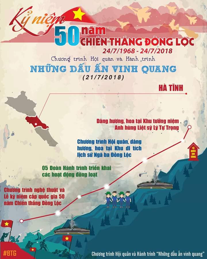 Hành trình “Những dấu ấn vinh quang” và các hoạt động kỷ niệm 50 năm chiến thắng Đồng Lộc diễn ra từ 19.7 - 22.7.2018 tại Hà Tĩnh và Nghệ An được tổ chức với hình thức đa dạng, nội dung phong phú, thu hút đông đảo cán bộ và đoàn viên thanh niên tham gia, được nhân dân và xã hội đánh giá là hoạt động thiết thực, có ý nghĩa quan trọng trong việc giáo dục chính trị tư tưởng cho mỗi đoàn viên thanh niên.