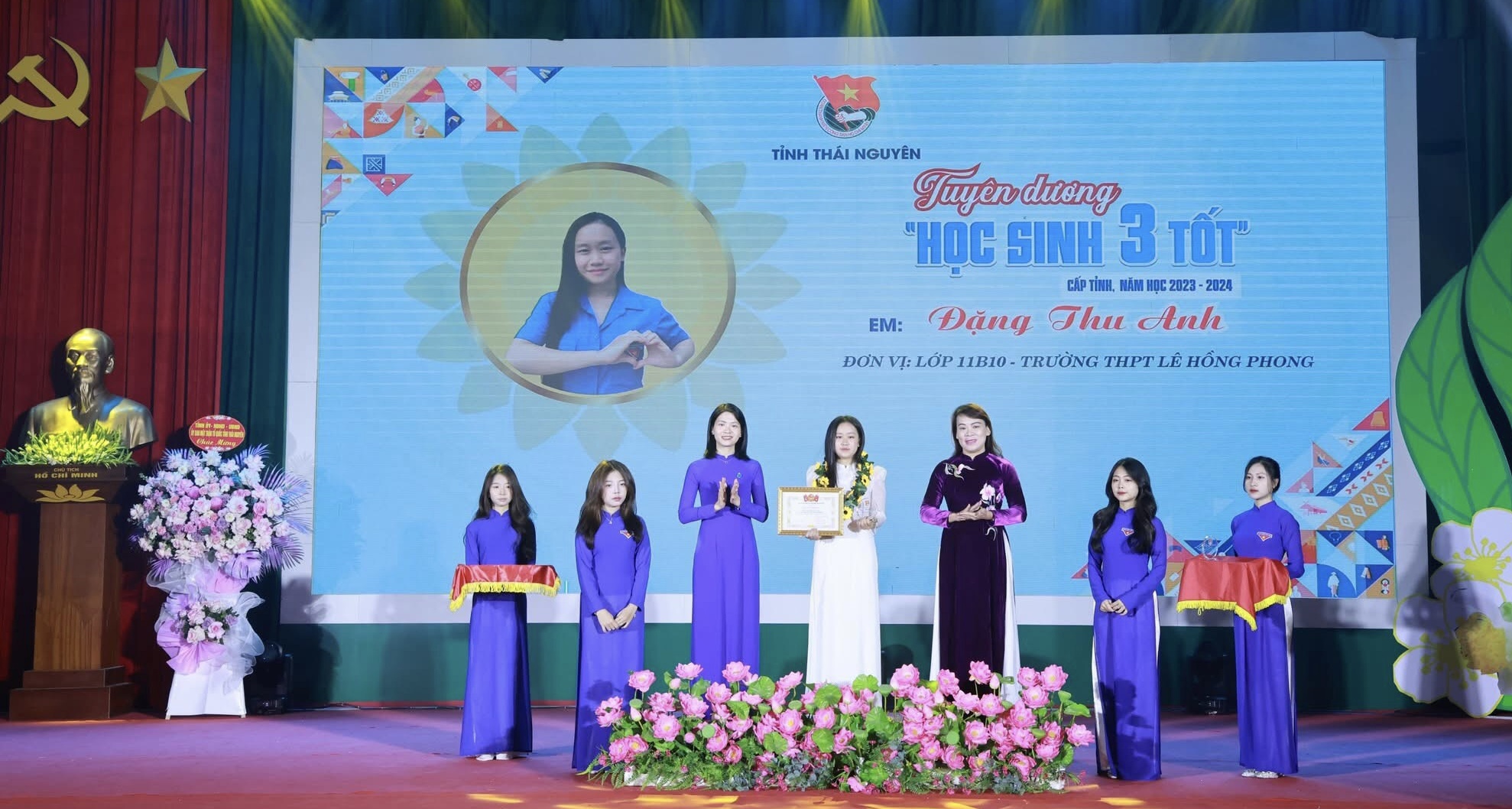 Đồng chí Phạm Thị Thu Hiền, Ủy viên Ban Chấp hành Trung ương Đoàn, Bí thư Tỉnh đoàn, Chủ tịch Hội Sinh viên Việt Nam tỉnh tuyên dương "Học sinh 3 tốt" tỉnh Thái Nguyên