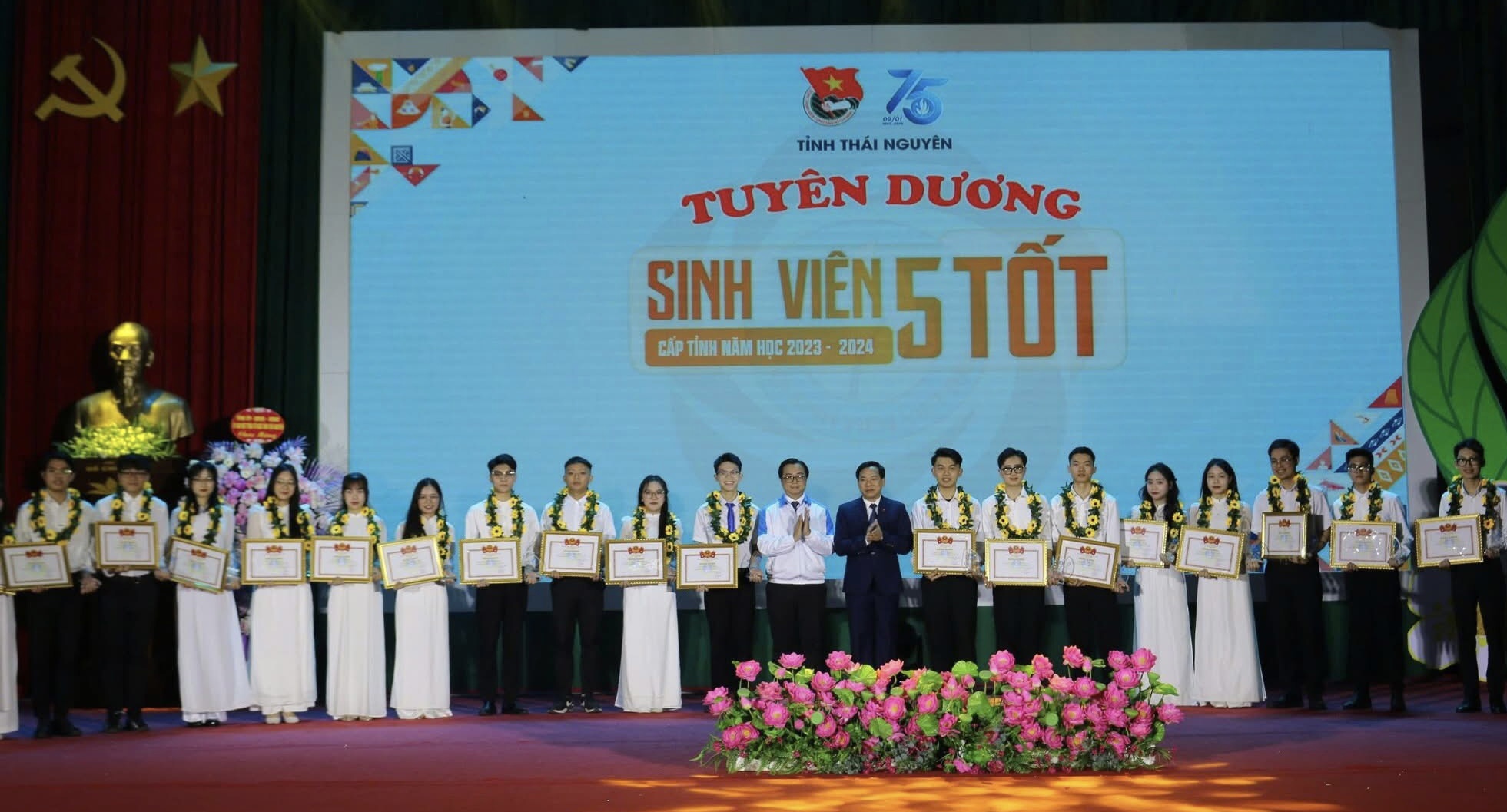 Nhân dịp này, 25 đảng viên trẻ tiêu biểu xuất sắc tỉnh Thái Nguyên, giai đoạn 2019 - 2024; 25 “Học sinh 3 tốt”, “Học sinh 3 rèn luyện” tiêu biểu cấp tỉnh năm học 2023 - 2024; 3 tập thể, 47 “Sinh viên 5 tốt” tiêu biểu đã được tuyên dương. Đây là những đảng viên trẻ, học sinh, sinh viên, cán bộ đoàn, hội tiêu biểu, tích cực tham gia công tác đoàn, công tác hội và phong trào sinh viên, thanh niên, có nhiều sản phẩm, công trình thanh niên thiết thực, là những tấm gương sáng để đoàn viên, thanh niên, đảng viên trẻ học tập, noi theo.