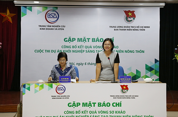 Sáng 6/9, Trung ương Đoàn họp báo công bố 105 dự án lọt vào Vòng bán kết Cuộc thi Dự án khởi nghiệp sáng tạo thanh niên nông thôn năm 2019. Cuộc thi do Trung ương Đoàn phối hợp với Trung tâm Nghiên cứu kinh doanh và hỗ trợ doanh nghiệp (BSA) tổ chức nhằm xây dựng hệ sinh thái khởi nghiệp trong lĩnh vực nông nghiệp.