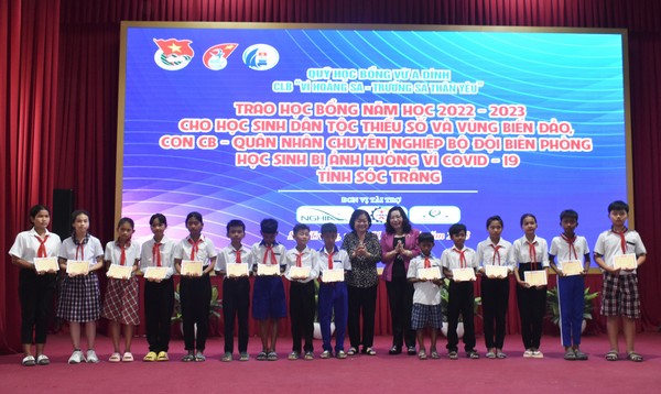 ĐTN: Chiều 11/4/, Tỉnh đoàn, Sở Giáo dục và Đào tạo tỉnh Sóc Trăng phối hợp với Ban điều hành Quỹ học bổng “Vừ A Dính” và học bổng CLB “Vì Hoàng Sa - Trường Sa thân yêu” tổ chức Lễ trao học bổng “Vừ A Dính” và học bổng CLB “Vì Hoàng Sa - Trường Sa thân yêu” năm học 2022 - 2023