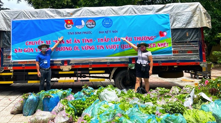 Mới đây, Tỉnh đoàn Bình Phước đã tổ chức chuyến xe nghĩa tình thứ 7 hướng về TP HCM. 5 tấn hàng hóa từ chuyến xe gồm một số loại rau, củ, quả, gạo, mì gói, sữa đã được chia thành 750 suất quà trao cho 400 hộ dân quận Bình Thạnh và 350 hộ quận 8 (TP Hồ Chí Minh).