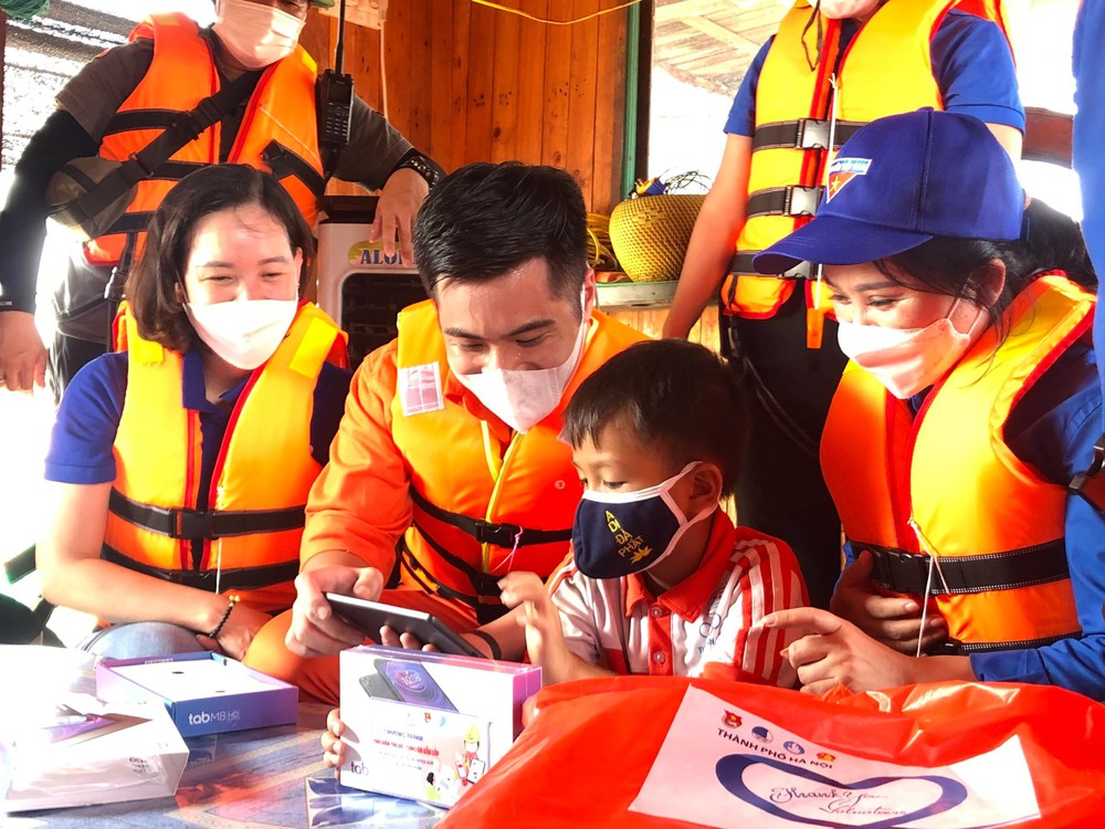 Thành Đoàn Hà Nội và các đơn vị liên quan trao tặng thiết bị điện tử cho trẻ em làng chài ven sông Hồng học trực tuyến