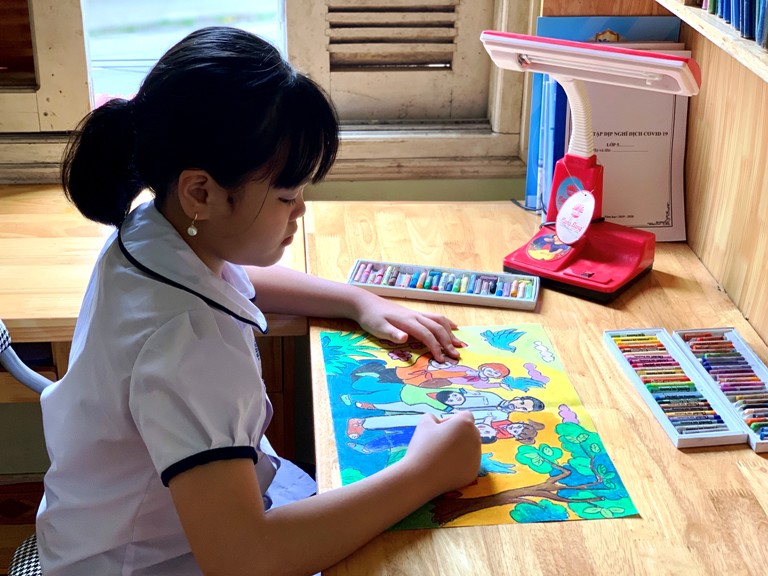Các em thiếu nhi vẽ tranh tham gia cuộc thi “Bác Hồ với thiếu nhi - Thiếu nhi với Bác Hồ”