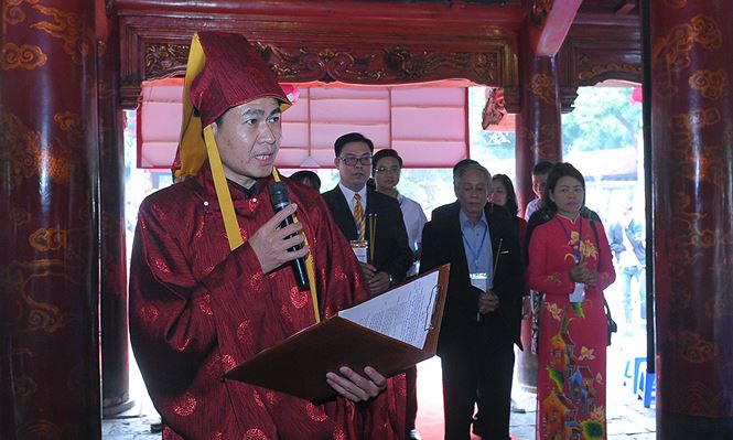 Trong không khí trang nghiêm, các vị đại biểu và 166 học sinh, sinh viên dân tộc thiểu số xuất sắc tiêu biểu năm 2018 đã dâng hương tại Văn Miếu - Quốc Tử Giám. Đây là năm thứ 6, Uỷ ban Dân tộc phối hợp với T.Ư Đoàn, Bộ GD&ĐT tổ chức Lễ Tuyên dương Học sinh, sinh viên dân tộc thiểu số xuất sắc tiêu biểu.