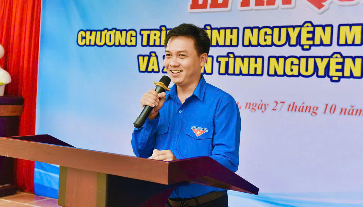 Đồng chí Nguyễn Thành Luân, Phó Bí thư thường trực Tỉnh đoàn, Chủ tịch Hội LHTN Việt Nam tỉnh Tiền Giang phát biểu tại chương trình
