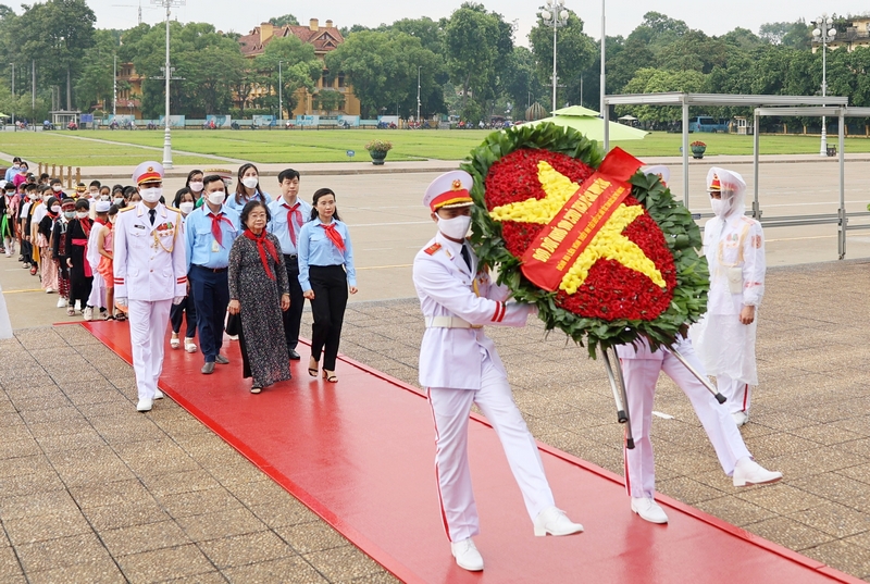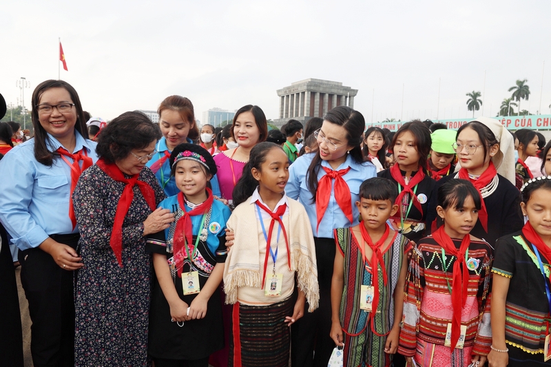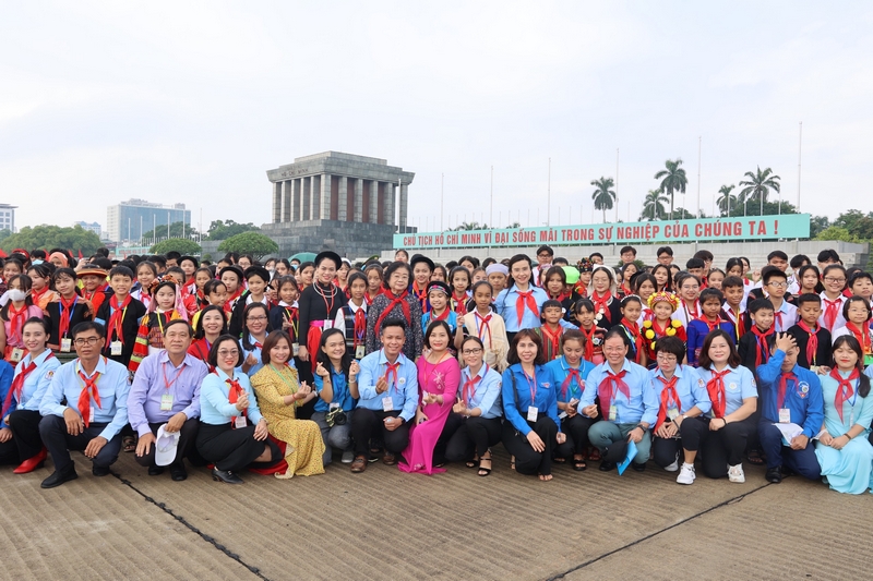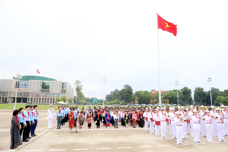 Thay mặt đoàn báo công với Bác, em Bun Hra ThaLy (dân tộc Lào) - học sinh lớp 9A4, Liên đội trưởng Trường THCS Tân Lợi, TP Buôn Ma Thuột, tỉnh Đắk Lắk phát biểu: Khắc ghi lời bác dạy, thiếu nhi các dân tộc chúng cháu đã không ngừng phấn đấu, ra sức luyện rèn, góp phần làm ngời sáng lên những trang sử Đội, xứng đáng con Lạc cháu Hồng, cháu ngoan của Bác Hồ muôn vàn kính yêu.