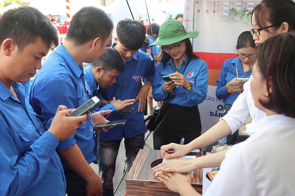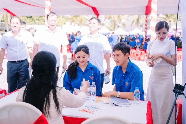 Các bạn đoàn viên, thanh niên tìm hiểu thông tin tuyển dụng tại các gian hàng