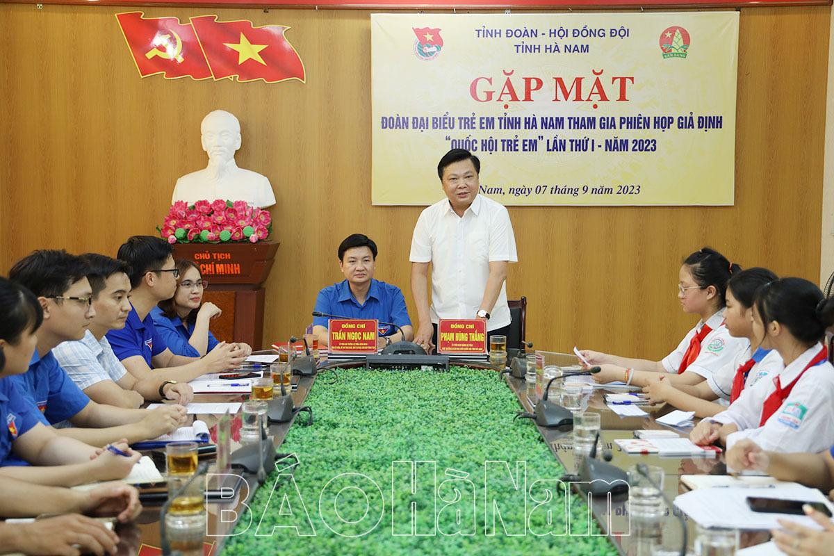 Tham dự cuộc gặp mặt, đồng chí Phạm Hùng Thắng, Tỉnh ủy viên, Phó Trưởng đoàn Đại biểu Quốc hội tỉnh đã chia sẻ, giới thiệu với các đại biểu trẻ em và cán bộ, chuyên viên cơ quan Tỉnh đoàn Hà Nam về vị trí, vai trò, chức năng của Quốc hội, đại biểu Quốc hội, tổ chức bộ máy của Quốc hội; kỹ năng, cách thức sử dụng trang thiết bị tương tác tại tòa nhà Quốc hội… Đồng thời giải đáp, làm rõ những thắc mắc của các em trong quá trình tham dự phiên họp tại tòa nhà Quốc hội.