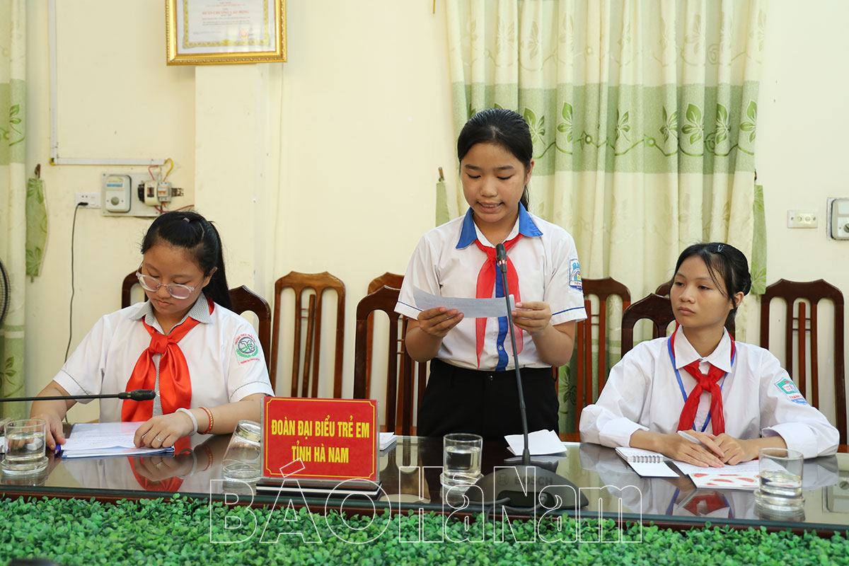Hà Nam có 3 đại biểu trẻ em bao gồm: Trần Bảo Trân, lớp 6B Trường THCS Tiên Nội (Duy Tiên); Phạm Vũ Hà Chi, lớp 6A8, Trường THCS Trần Phú (TP Phủ Lý); Đinh Thị Thương Thương, lớp 8 Trường THCS Thanh Tân (Thanh Liêm) đại diện cho hơn 120.000 học sinh, đội viên toàn tỉnh. Các đại biểu trẻ em có độ tuổi từ 11 - 16, với kết quả học tập, rèn luyện tốt, tích cực tham gia công tác Đội và các hoạt động xã hội.