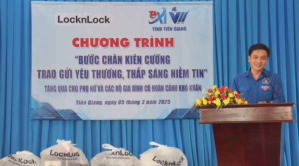 Trong ngày, Ban Thường vụ Tỉnh đoàn, Ban Thư ký Ủy ban Hội LHTN Việt Nam tỉnh Tiền Giang và Công ty TNHH Lock&Lock thành phố Hồ Chí Minh đã tổ chức chương trình “Bước chân kiên cường - Trao gửi yêu thương, thắp sáng niềm tin” lần 1 tại xã Bình Đông, thành phố Gò Công.