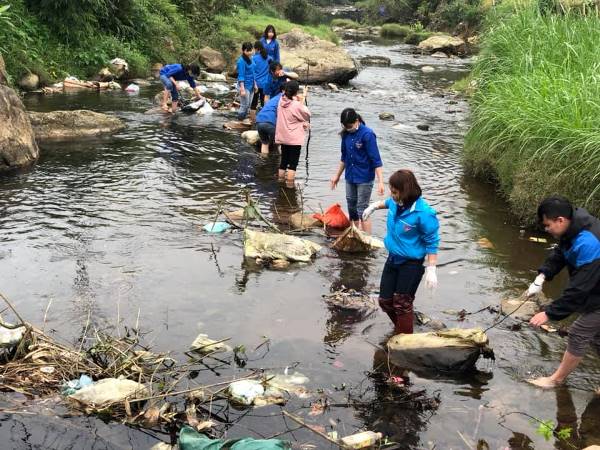 ĐVTN huyện Chiêm Hóa tham gia dọn rác, làm sạch lòng suối |