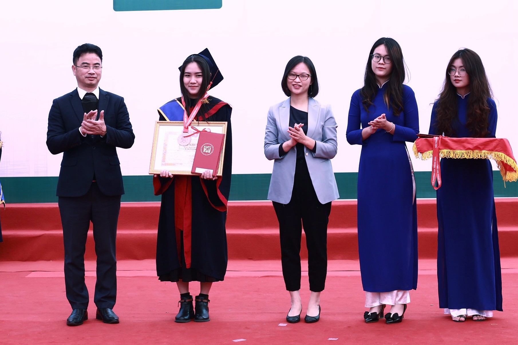 Đại diện Ban Tổ chức trao Giải thưởng Loa Thành năm 2022 trao giải nhì cho các sinh viên có đồ án xuất sắc tại buổi lễ.