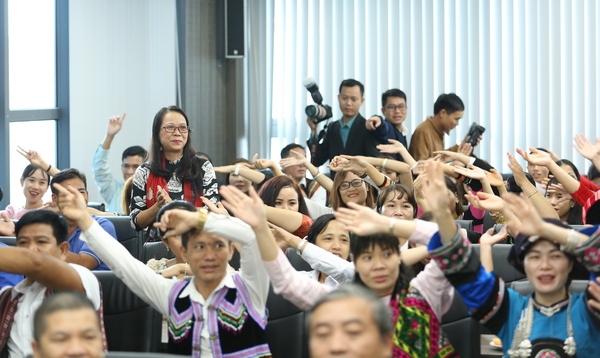 Thứ trưởng, Phó Chủ nhiệm UBDT Hoàng Thị Hạnh cùng các thầy cô giáo giao lưu văn nghệ tại buổi gặp mặt