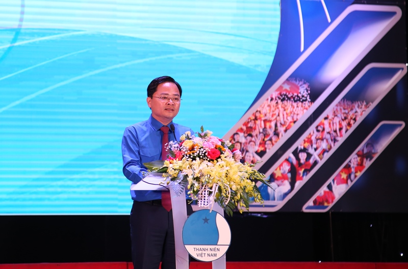 Đồng chí Nguyễn Anh Tuấn, Bí thư thường trực Trung ương Đoàn, Chủ tịch Trung ương Hội LHTN Việt Nam phát biểu ôn lại truyền thống 64 năm của Hội LHTN Việt Nam