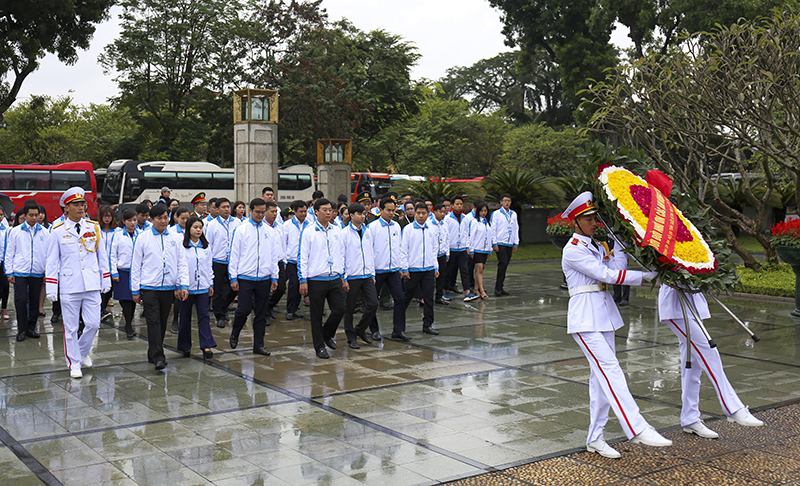 Các đại biểu đặt vòng hoa vào Lăng viếng Chủ tịch Hồ Chí Minh