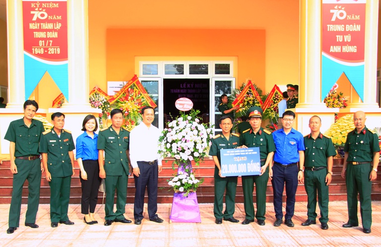 Đồng chí Nguyễn Anh Tuấn - Phó Bí thư thường trực Đảng ủy cùng với Hội Cựu chiến binh cơ quan Trung ương Đoàn đã đến chúc mừng và trao tặng 20 triệu đồng cho cán bộ, chiến sỹ Trung đoàn 88.