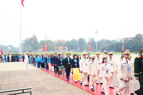Đoàn đại biểu tham dự Đại hội đại biểu toàn quốc Hội Liên hiệp Thanh niên Việt Nam lần thứ IX vào lăng viếng Chủ tịch Hồ Chí Minh
