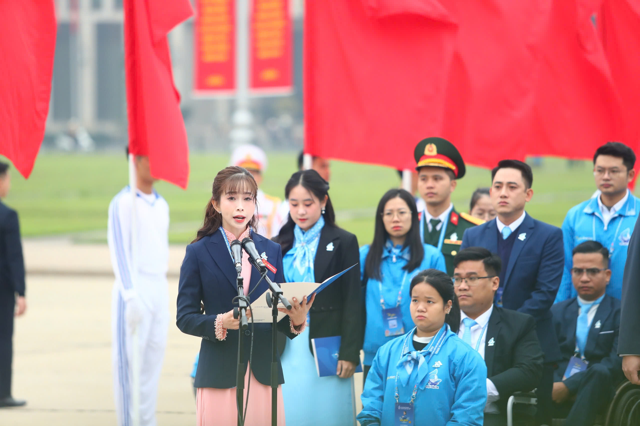 Chúng cháu nguyện tin tưởng tuyệt đối và đi theo con đường mà Đảng, Bác Hồ và Nhân dân ta đã lựa chọn; ra sức rèn luyện, xây dựng bản lĩnh chính trị, lập trường, tư tưởng kiên định vững vàng; phẩm chất đạo đức trong sáng; lối sống lành mạnh, trách nhiệm; có văn hoá, sức khỏe, kiến thức khoa học, công nghệ; có lòng yêu nước nồng nàn, có tinh thần khát vọng, đoàn kết, tiên phong, sáng tạo, góp phần cùng đất nước bước vào kỷ nguyên mới hiện thực hoá mục tiêu phát triển đất nước đến năm 2030, tầm nhìn đến năm 2045, để đất nước ta “ngày càng đàng hoàng hơn, to đẹp hơn” như Bác kính yêu hằng mong muốn”, chị Châu Tuyết Vân xúc động hứa với Bác.