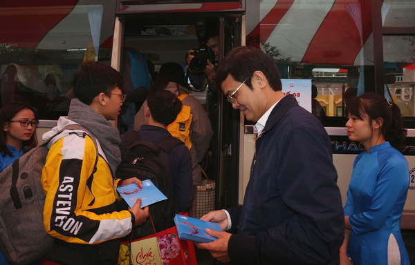 Chủ tịch Hội Sinh viên Việt Nam Bùi Quang Huy trao quà, vé xe miễn phí cho sinh viên về quê đón Tết