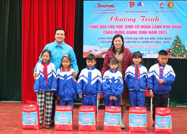 Trong không khí ấm áp và niềm vui, ngày 23/12, Ban Tuyên giáo Tỉnh đoàn Nghệ An phối hợp với Văn phòng đại diện Báo Tiền Phong tại khu vực Bắc Trung Bộ và Trường Tiểu học Nghi Đức (thành phố Vinh, Nghệ An) tổ chức chương trình “Giáng sinh cho em”.