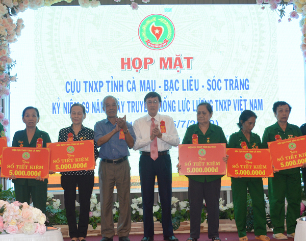 Nhân buổi họp mặt, đại diện Hội Cựu TNXP 3 tỉnh đã tặng 9 sổ tiết kiệm, mỗi sổ trị giá 5 triệu đồng cho các cô, chú cựu TNXP có hoàn cảnh khó khăn; đại diện Hội Cựu TNXP tỉnh Cà Mau trao cờ đăng cai tổ chức họp mặt nhân kỷ niệm 70 năm Ngày truyền thống lực lượng TNXP Việt Nam vào năm 2020 cho đại diện Hội Cựu TNXP tỉnh Bạc Liêu.