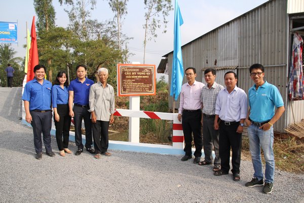 Cụ thể, tiến hành khánh thành cầu Hy vọng 43 (cầu Kênh Đòn Dong, xã Long Điền A, Chợ Mới); cầu Hy vọng 66 (cầu Trác Thị Giàu, xã Long Giang, Chợ Mới); cầu Hy vọng 56 (cầu Kênh Ranh Tân Tuyến - Vọng Thê, xã Tân Tuyến, Tri Tôn); cầu Hy vọng 65 (cầu số 2 Nhà thờ Núi Tượng, xã Vọng Đông, Thoại Sơn). Tổng giá trị xây dựng của 04 cây cầu là 1,785 triệu đồng, trong đó Quỹ Hy vọng tài trợ 550 triệu đồng, còn lại do địa phương và nhân dân đóng góp kinh phí, ngày công xây dựng.