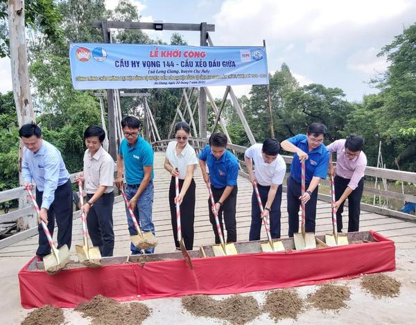 Cụ thể, tổ chức khởi công xây dựng cầu Hy vọng 144 - Cầu Xẻo Dầu Giữa (xã Long Giang, huyện Chợ Mới) với thiết kế bằng bê tông cốt thép. Cầu có chiều dài 30 mét, rộng 3,5 mét, độ thông thuyền 15 mét, chịu tải trọng 8 tấn thay thế cho cây cầu cũ bằng gỗ đã xuống cấp. Thời gian xây dựng cầu dự kiến trong 03 tháng sẽ hoàn thành.