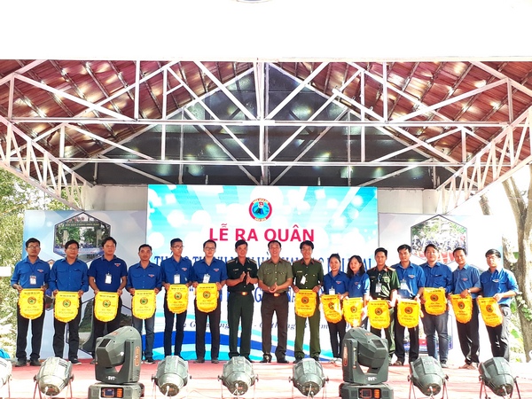 Đồng chí Lê Văn Lĩnh, Phó Trưởng Ban Dân vận Tỉnh ủy trao cờ lệnh cho đồng chí Lâm Thành Sĩ, Bí thư Tỉnh Đoàn An Giang ra quân thực hiện các công trình, phần việc thanh niên