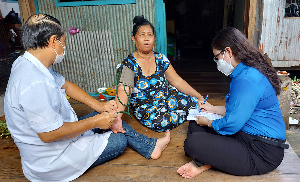 Đoàn y, bác sĩ đến tận các hộ gia đình chính sách, hộ nghèo, hộ có hoàn cảnh khó khăn tại địa bàn dân cư thăm khám, tư vấn sức khỏe