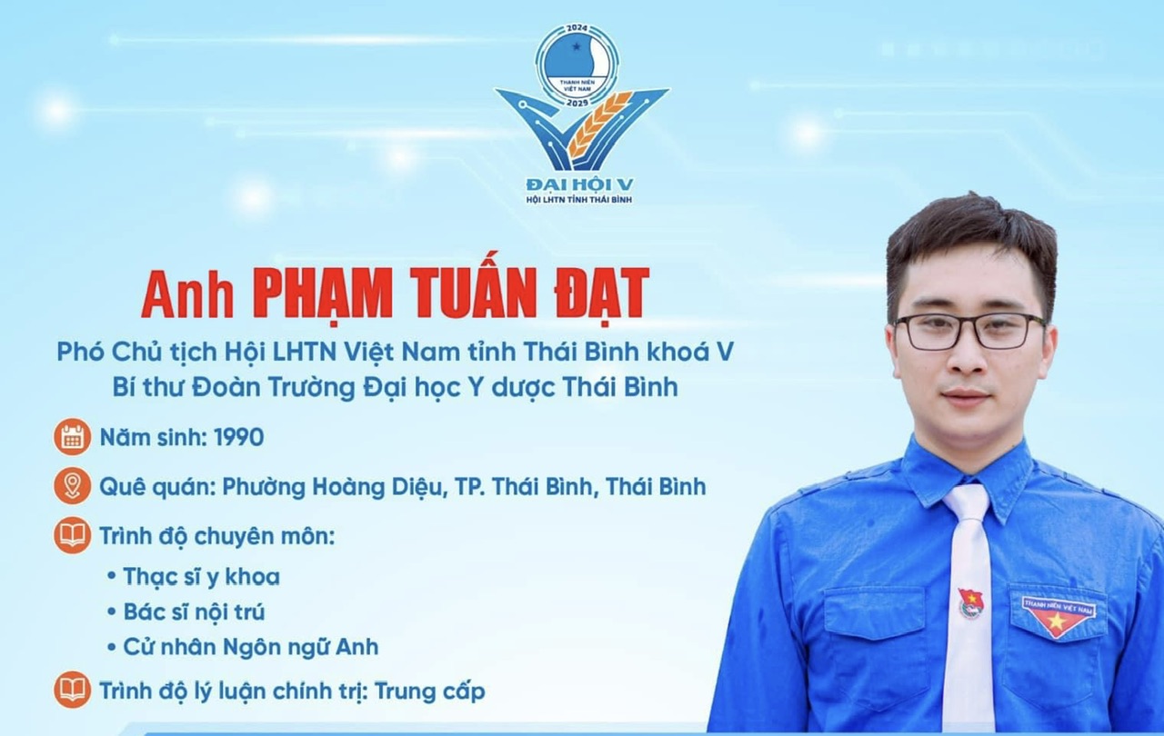 Anh Thiệu Minh Quỳnh – Bí thư Tỉnh Đoàn, Chủ tịch Hội LHTN Việt Nam tỉnh Thái Bình Khóa IV, tiếp tục được tín nhiệm cử làm Chủ tịch Hội LHTN Việt Nam tỉnh Thái Bình khóa V.