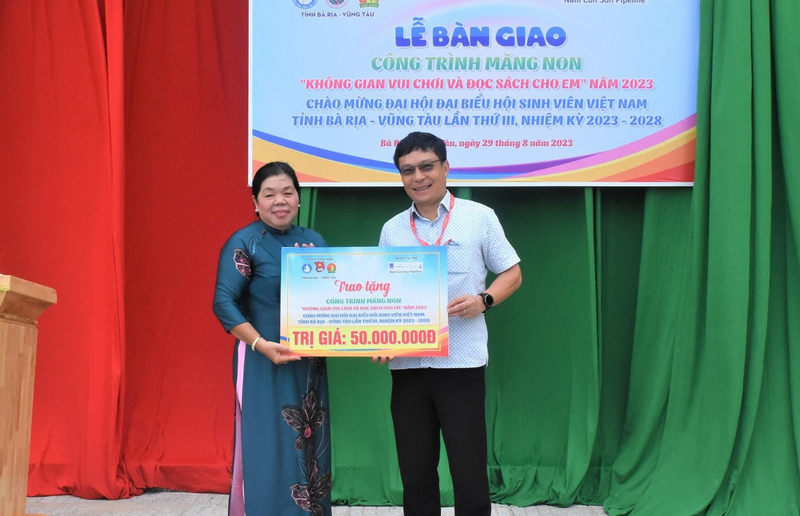 Cùng với trao tặng công trình, Tỉnh đoàn, Hội Sinh viên Việt Nam tỉnh cũng trao tặng gần 1.000 đầu sách thiếu nhi cho các em học sinh tại trường, góp phần giúp các em có một sân chơi lành mạnh, bổ ích, đáp ứng nhu cầu vui chơi, giải trí, rèn luyện sức khoẻ, phát huy tính năng động, sáng tạo, phát triển toàn diện về thể chất lẫn tinh thần.