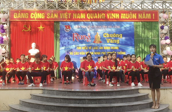 Được biết, ngày 08/11, Tỉnh đoàn tổ chức Rung chuông vàng tìm hiểu về Luật an ninh mạng và những vấn đề an ninh phi truyền thống tại Trường THPT Lạng Giang số 1; và trong tháng 12/2018, Tỉnh đoàn tiếp tục tổ chức 02 hội thi tiểu phẩm và kiến thức trắc nghiệm tìm hiểu Luật an ninh mạng và những vấn đề an ninh phi truyền thống tại Huyện Lục Nam và Lục Ngạn.