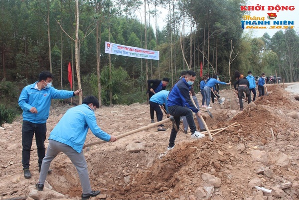 Đoàn viên, thanh niên tham gia xây dựng công trình thanh niên "Vì một Nham Biền xanh"